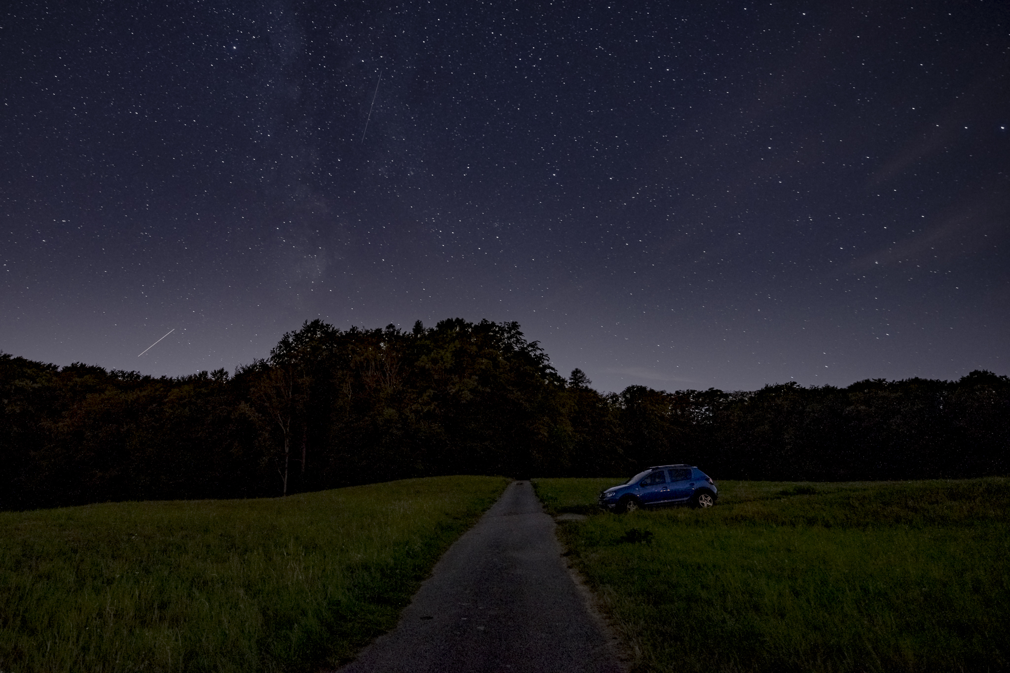 Ursprünglich wollte ich die Milchstraße an Pfingsten in den Dolomiten fotografieren. Leider hat das Wetter, mit geschlossener Wolkendecke, dieses Vorhaben zunichte gemacht. Eigentlich hatte ich das Vorhaben bereits auf den späten Herbst verschoben doch dann zeigte sich am 09.09.2018 abends, die Milchstraße so klar, dass sie selbst mit bloßem Auge Innerorts gut zu erkennen war. Also habe ich kurz entschlossen die Fototasche geschnappt und bin in der Nähe von Heppenheim an den Waldrand gefahren.