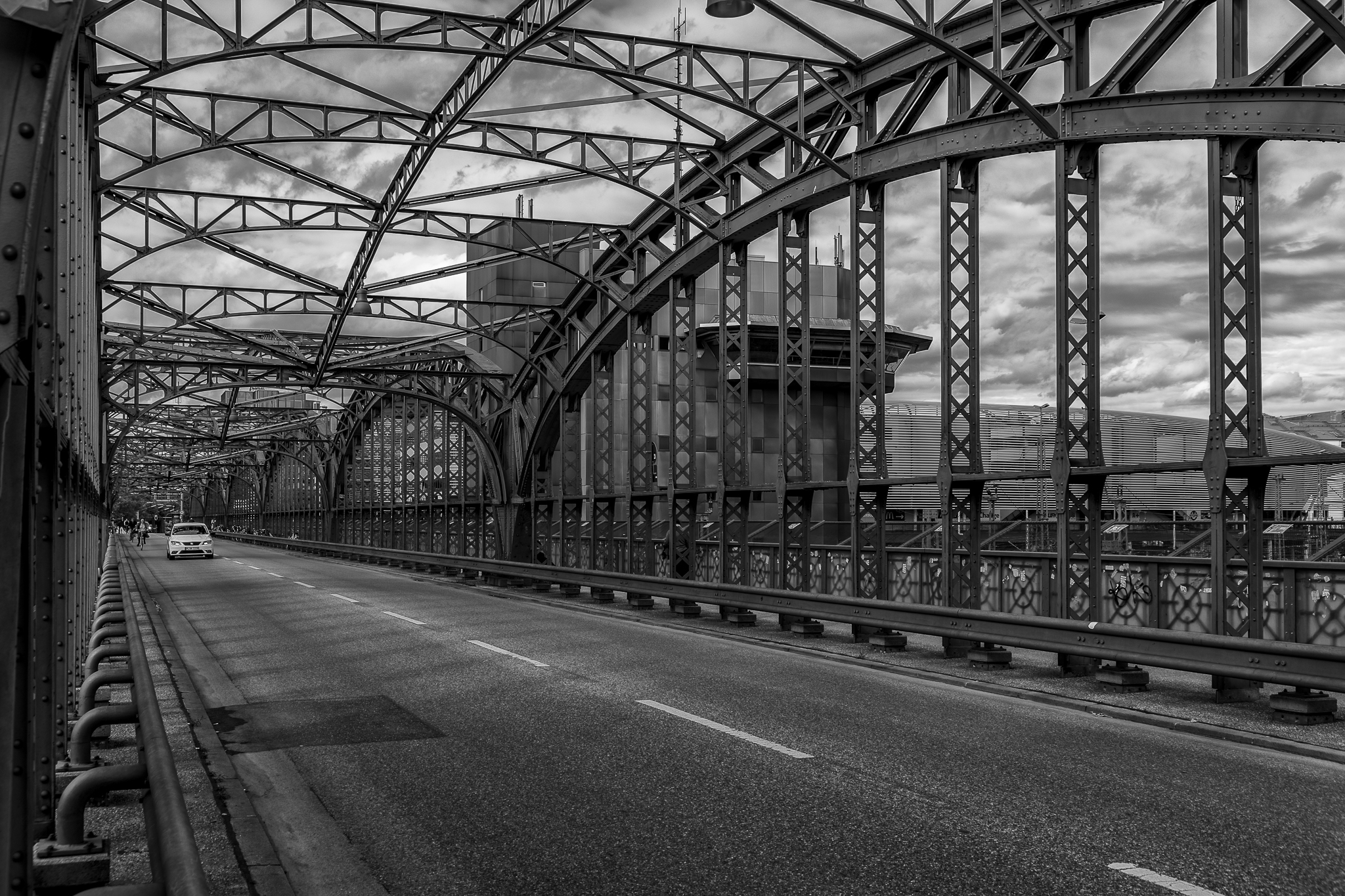 Die Stahlkonstrucktion der Hackerbrücke am Münchner Hauptbahnhof inspirierte mich dazu die Bilder in scharz weiß zu entwickeln.