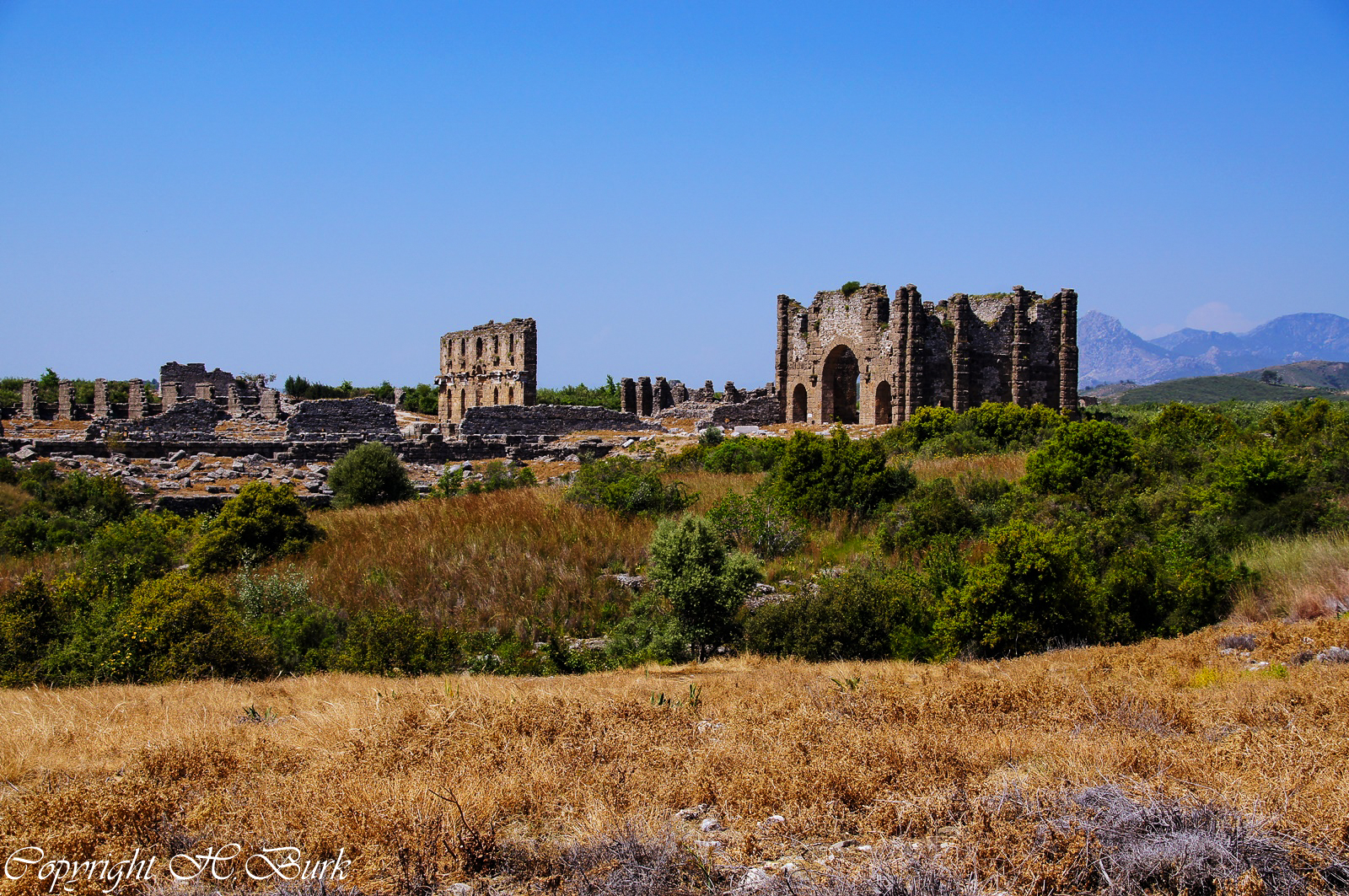 Aspendos Basilika auf dem Hügel